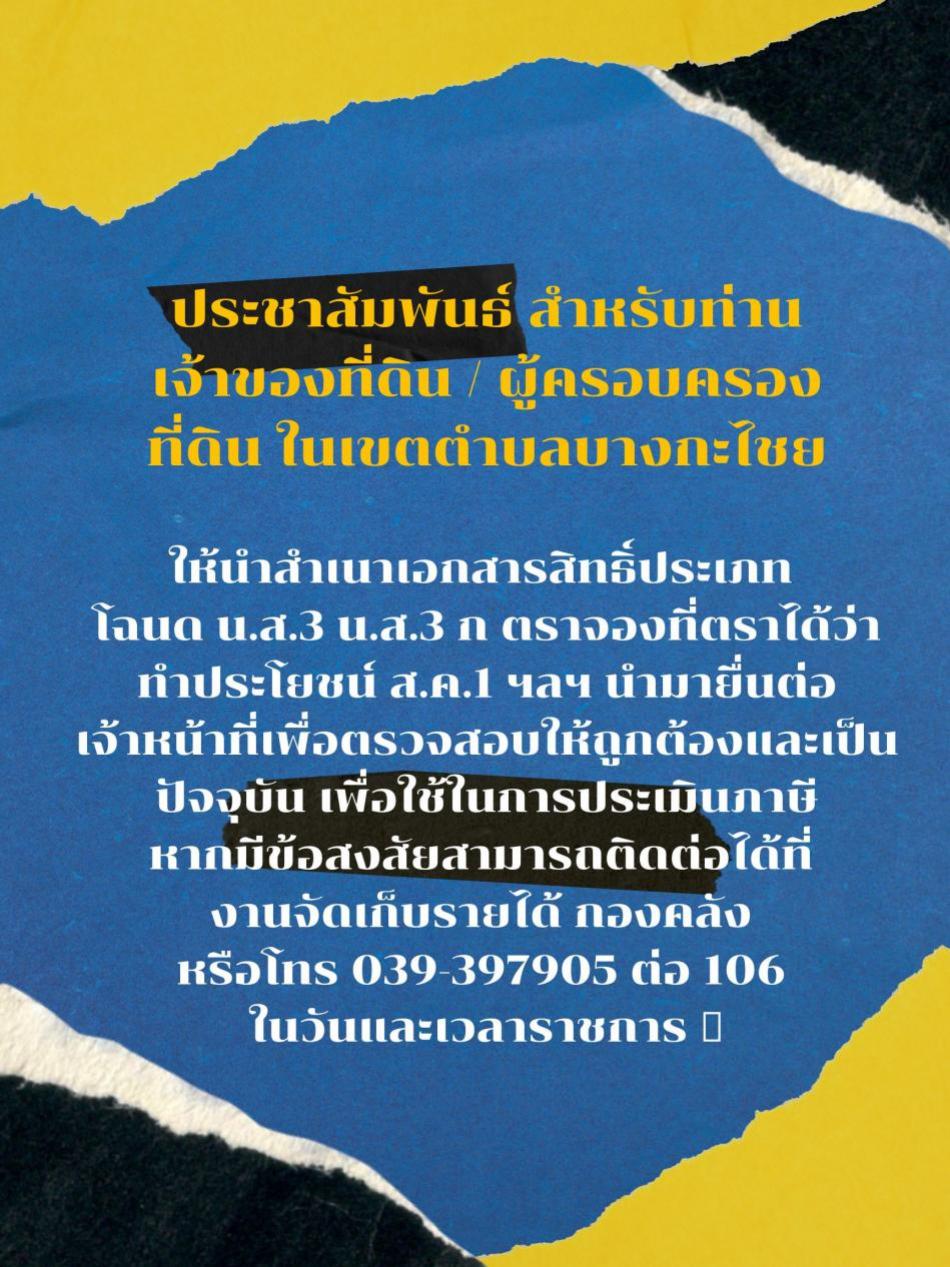 ขอแจ้งประชาสัมพันธ์ สำหรับท่านเจ้าของที่ดิน / ผู้ครอบครองที่ดิน ในเขตตำบลบางกะไชย [6 สิงหาคม 2567]