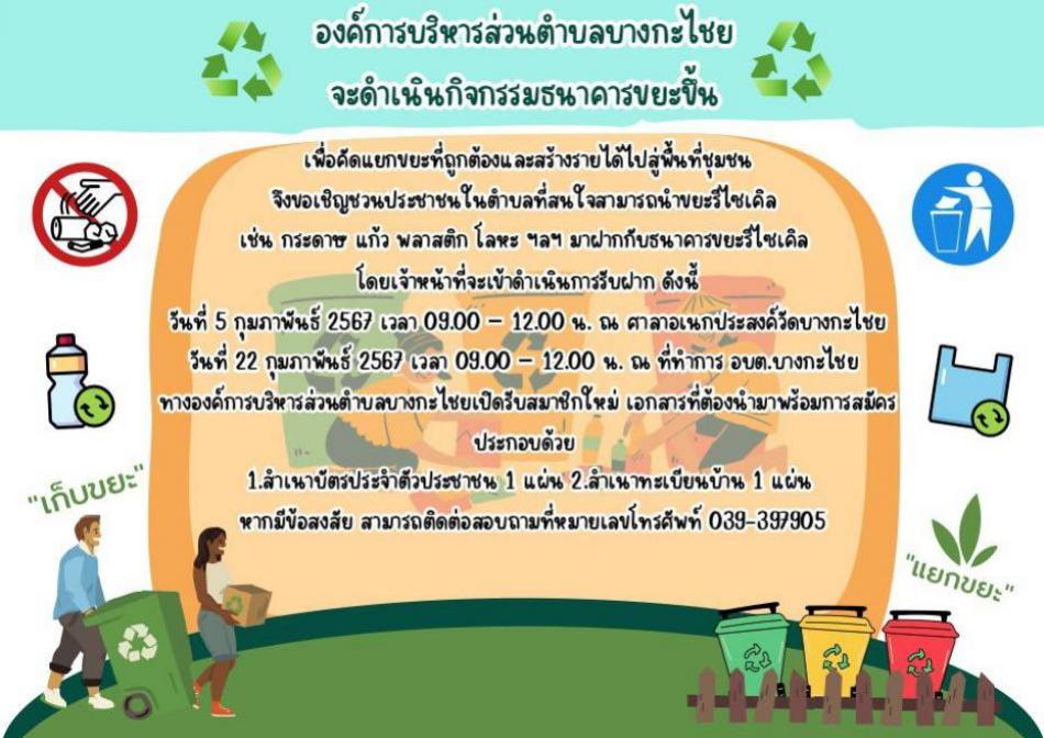 ประชาสัมพันธ์โครงการธนาคารขยะ [6 สิงหาคม 2567]
